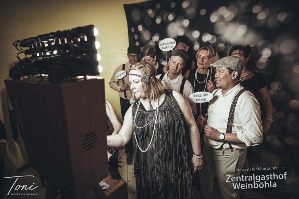 Was wäre eine Zeitreise ohne die passenden Accessoires und Requisiten? Für die anstehende Mottoparty des 20-Jahre Balls im Zentralgasthof Weinböhla waren die Vorbereitungen im vollen Gange. Die Vintage Fotobox war das Highlight des Abends sein, um authentische und unvergessliche Fotos festzuhalten. Mit einer Vielzahl an Kostümen und Requisiten war jeder Gast in eine andere Ära eintauchen können.